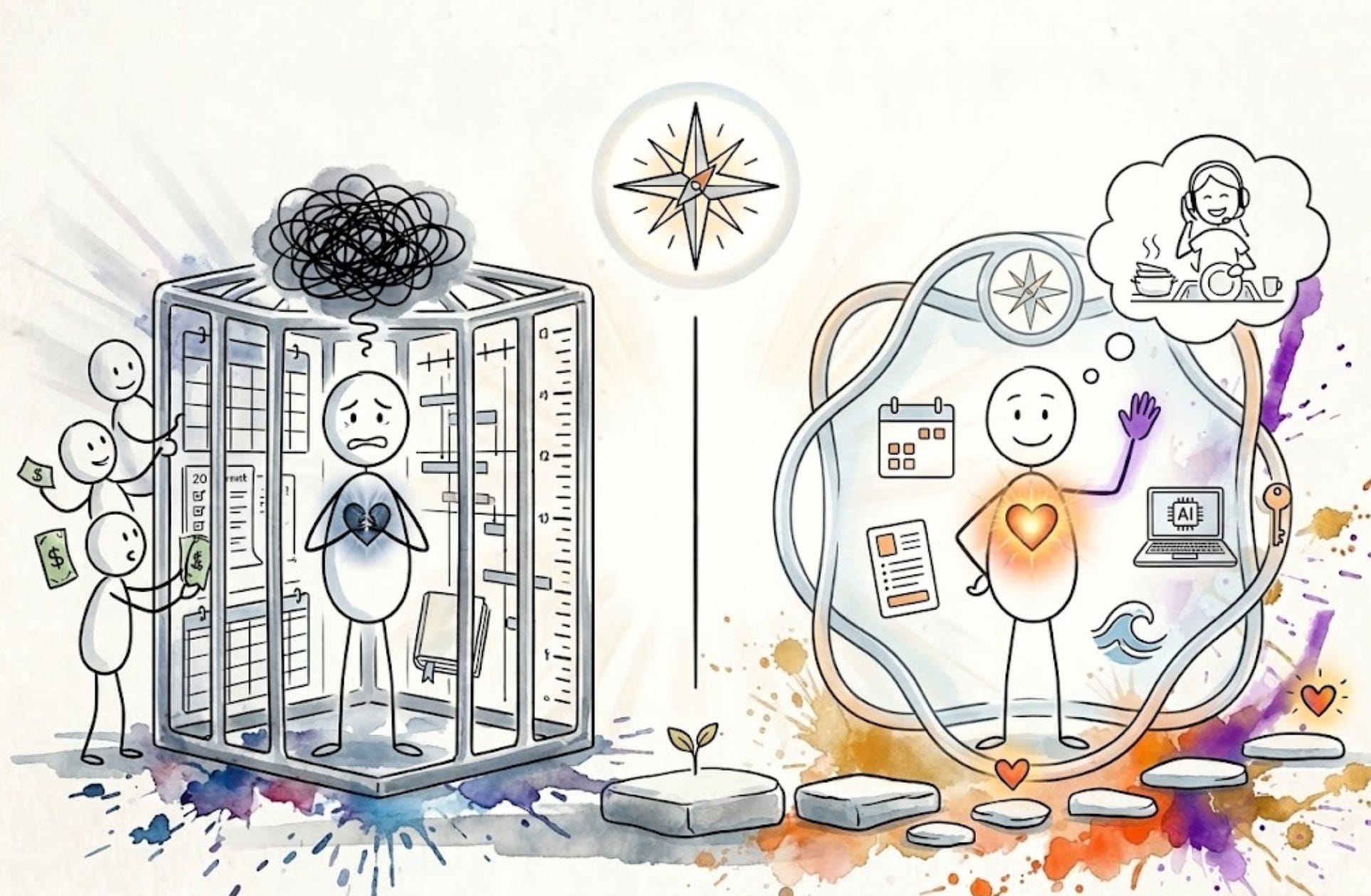 Ela tinha acabado de finalizar uma página de vendas e estava se sentindo muito bem com isso. Mas no momento em que imaginou três clientes fechando na mesma semana, o estômago afundou. Não porque achasse que não conseguiria entregar, mas porque imaginou perder a leveza que construiu a vida inteira para ter.